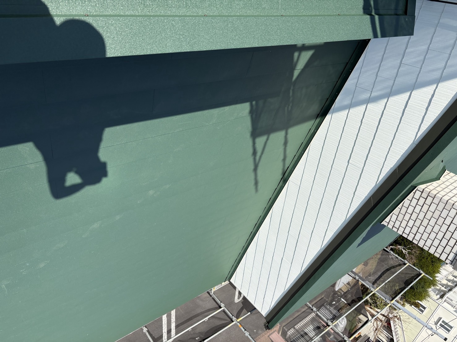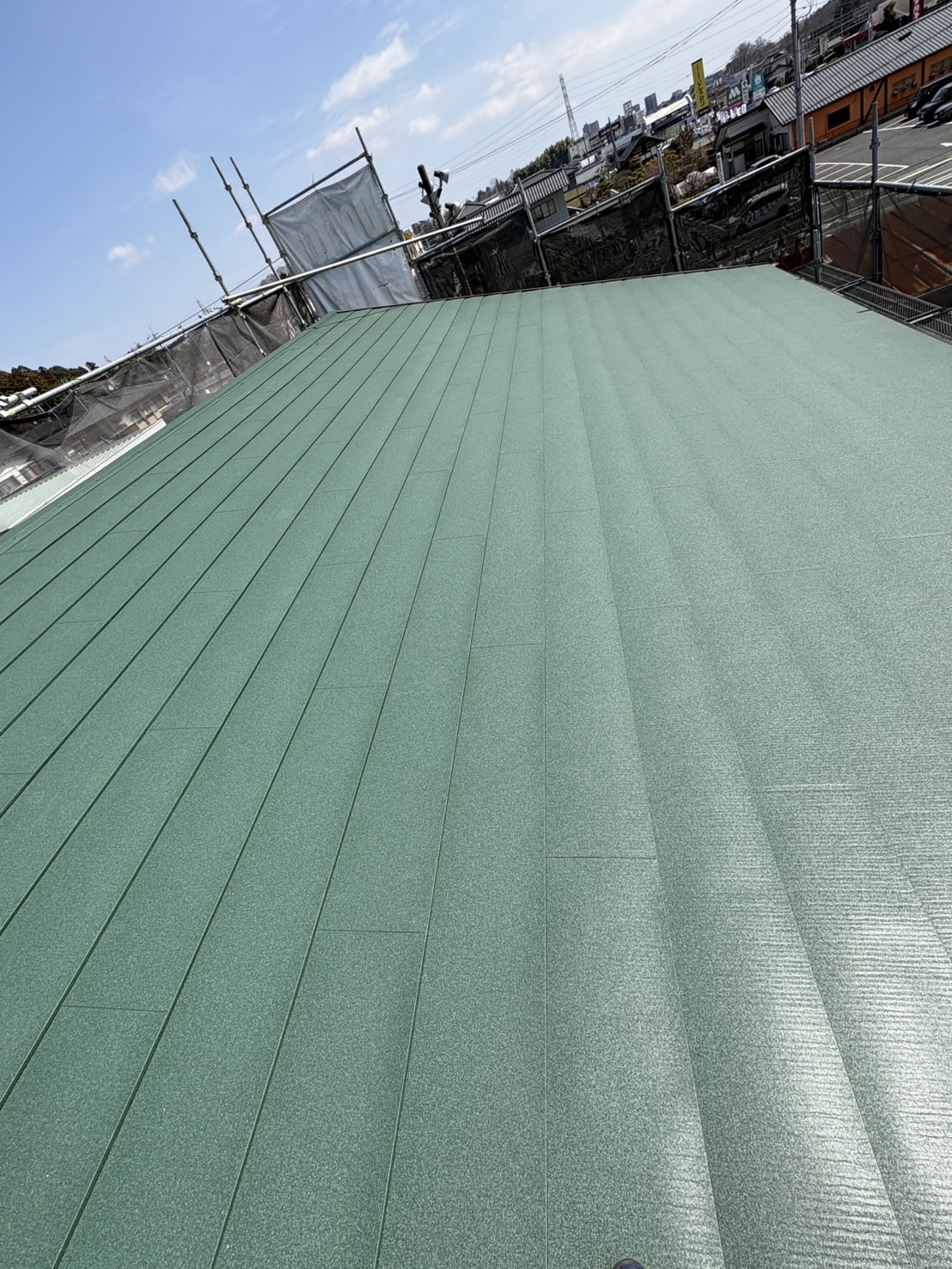 屋根表面の塗膜も傷み、屋根材自体の耐久性が心配な状態だったため、今回は**屋根カバー工法(カバールーフ工事)**をご提案しました。