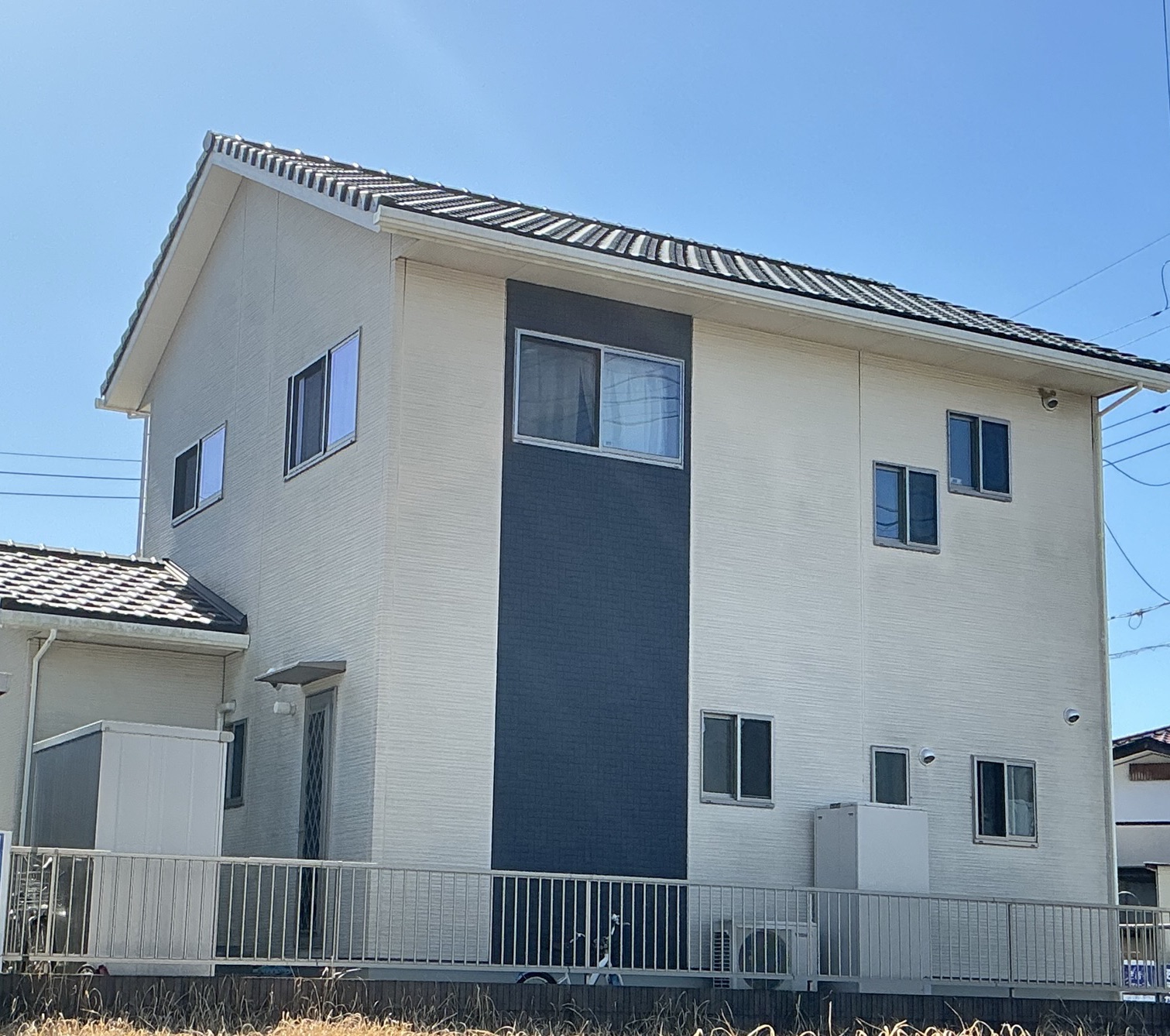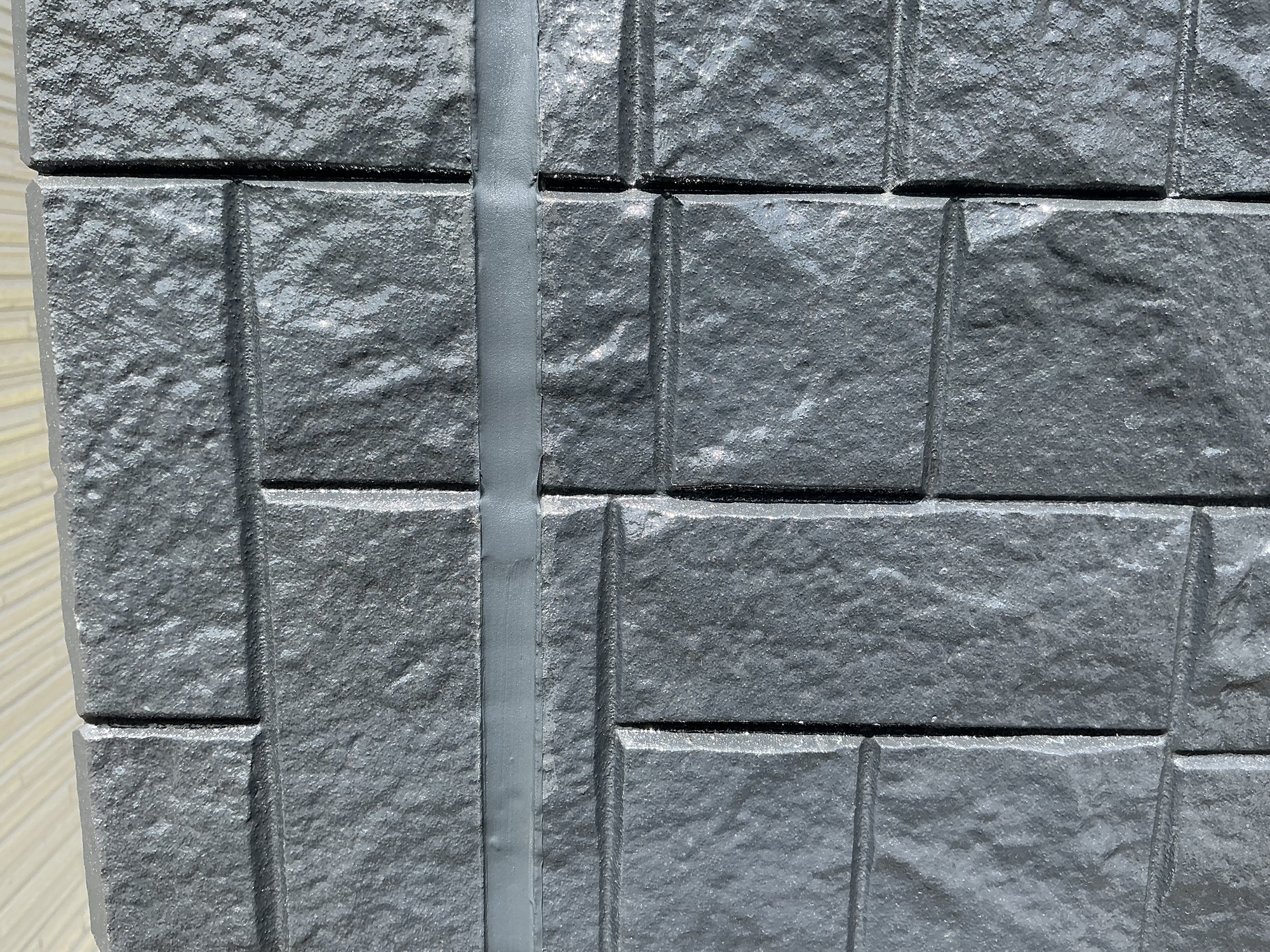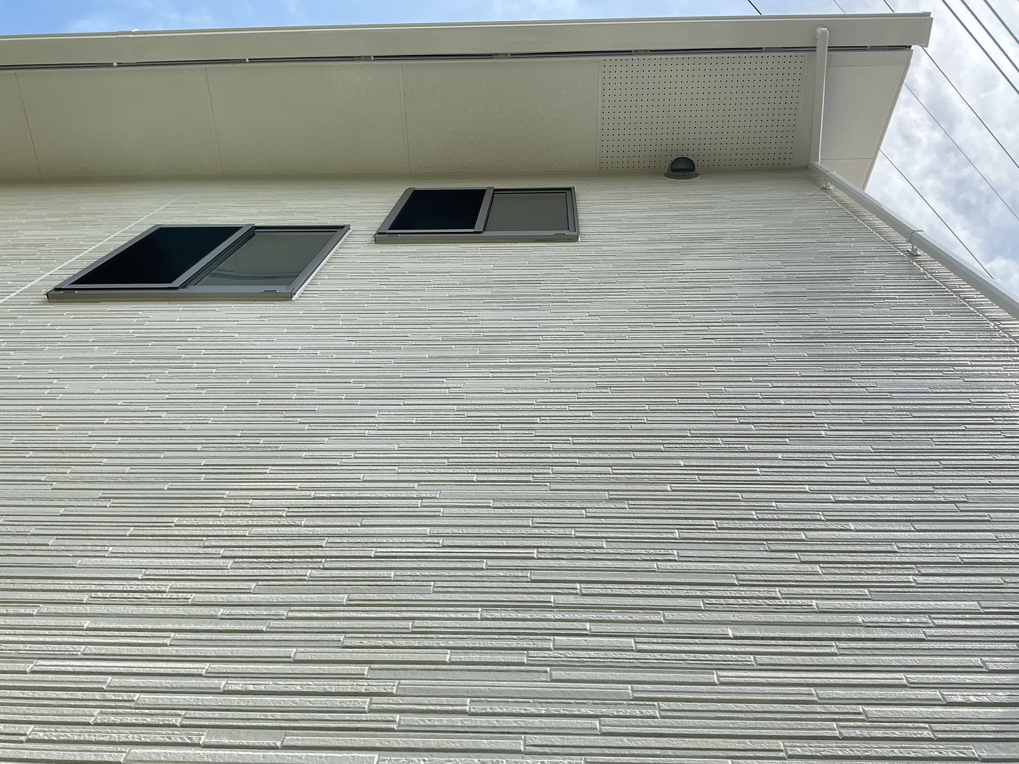 今回の施工では、外壁の柄や質感を損なわないクリヤ塗料を使用し、意匠性をそのままに耐久性を向上。特にアクセント部分の立体感や陰影が際立ち、住まい全体の高級感がワンランクアップしました。